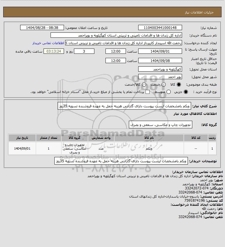 تلفن:5- 88349670 (021) فکس: 88349673 (021) Website: www.ParsNamadData.com E-mail: Info@ParsNamadData.com استعلام وبکم بامشخصات لیست پیوست دارای گارانتی هزینه حمل به عهده فروشنده تسویه 35روز