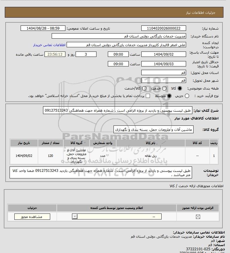 تلفن:5- 88349670 (021) فکس: 88349673 (021) Website: www.ParsNamadData.com E-mail: Info@ParsNamadData.com استعلام طبق لیست پیوستی و بازدید از پروژه الزامی است . شماره همراه جهت هماهنگی 09127513243