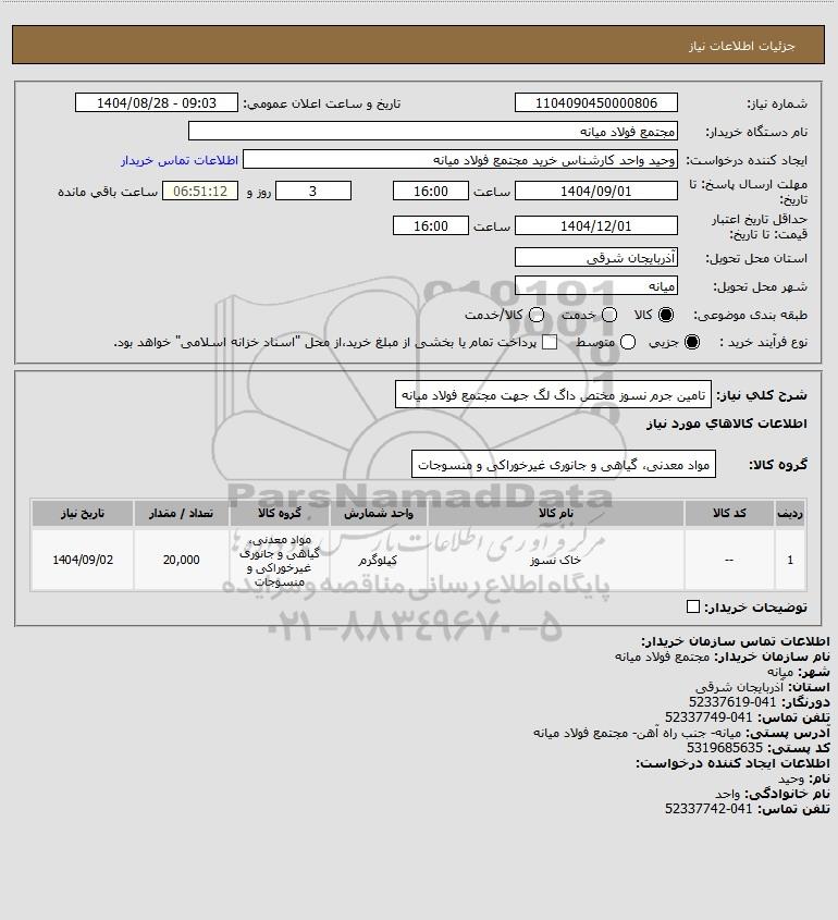 تلفن:5- 88349670 (021) فکس: 88349673 (021) Website: www.ParsNamadData.com E-mail: Info@ParsNamadData.com استعلام تامین جرم نسوز مختص داگ لگ جهت مجتمع فولاد میانه