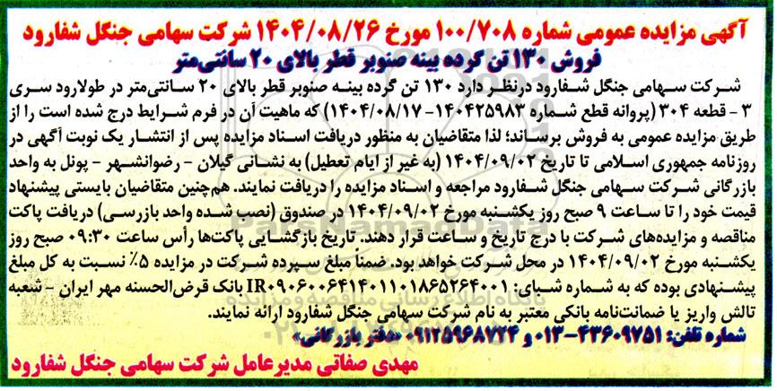 آگهی مزایده عمومی شماره 100/708 مورخ 1404.08.26 شرکت سهامی جنگل شفارود