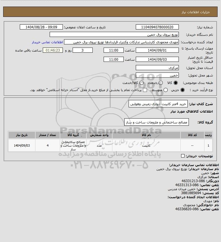 تلفن:5- 88349670 (021) فکس: 88349673 (021) Website: www.ParsNamadData.com E-mail: Info@ParsNamadData.com استعلام خرید 4متر کابینت دیواری زمینی وهوایی