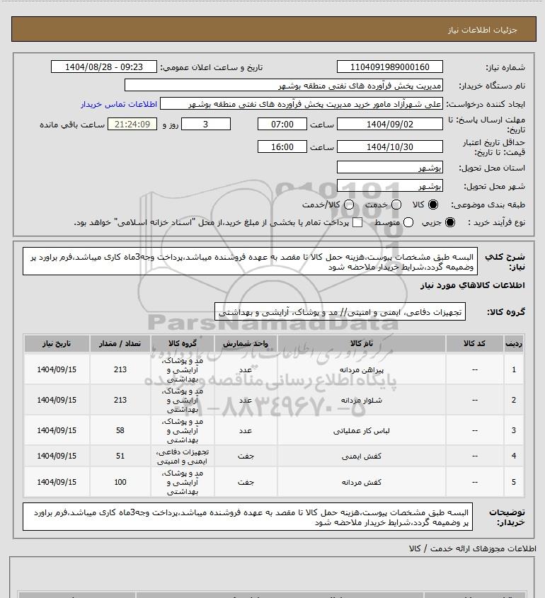 تلفن:5- 88349670 (021) فکس: 88349673 (021) Website: www.ParsNamadData.com E-mail: Info@ParsNamadData.com استعلام البسه طبق مشخصات پیوستهزینه حمل کالا تا مقصد به عهده فروشنده میباشدپرداخت وجه3ماه کاری میباشدفرم براورد پر وضمیمه گرددشرایط خریدار ملاحضه شود