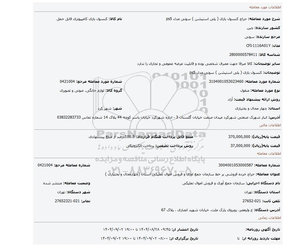 شماره مورد معامله: 3104001053023460شماره مورد معامله مرجع: 0421004