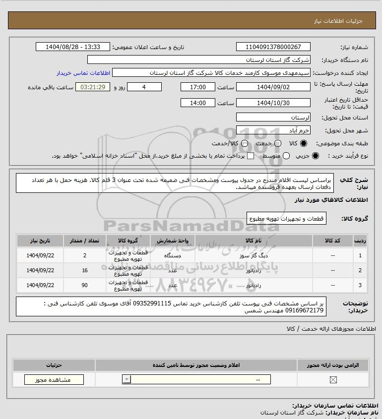تلفن:5- 88349670 (021) فکس: 88349673 (021) Website: www.ParsNamadData.com E-mail: Info@ParsNamadData.com استعلام براساس لیست اقلام مندرج در جدول پیوست ومشخصات فنی ضمیمه شده تحت عنوان 3 قلم کالا. هزینه حمل با هر تعداد دفعات ارسال بعهده فروشنده میباشد.