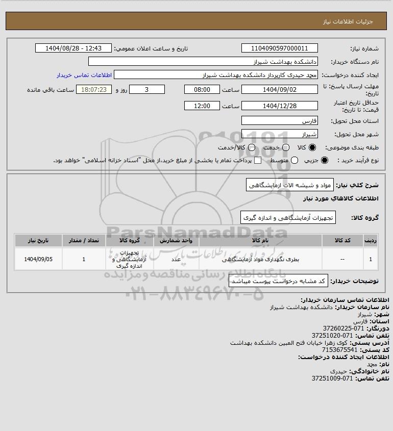 تلفن:5- 88349670 (021) فکس: 88349673 (021) Website: www.ParsNamadData.com E-mail: Info@ParsNamadData.com استعلام مواد و شیشه الات ازمایشگاهی
