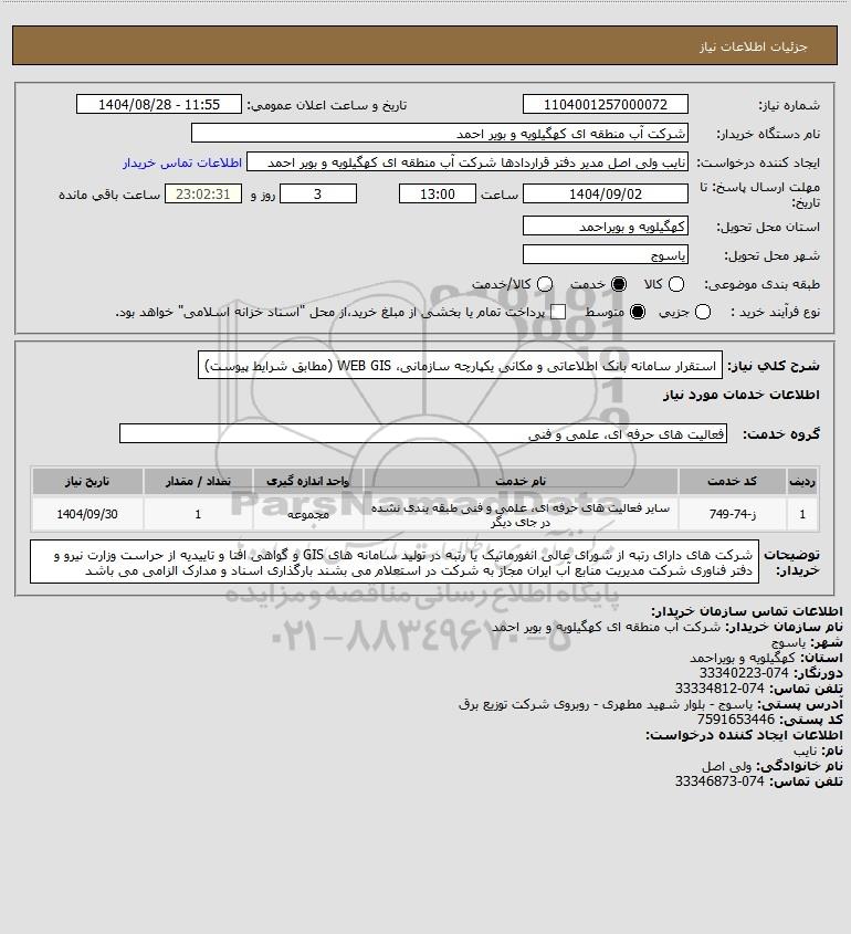 تلفن:5- 88349670 (021) فکس: 88349673 (021) Website: www.ParsNamadData.com E-mail: Info@ParsNamadData.com استعلام استقرار سامانه بانک اطلاعاتی و مکانی یکپارچه سازمانی WEB GIS (مطابق شرایط پیوست)