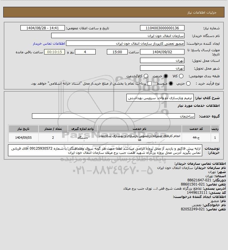 تلفن:5- 88349670 (021) فکس: 88349673 (021) Website: www.ParsNamadData.com E-mail: Info@ParsNamadData.com استعلام ترمیم وبازسازی دو واحد سرویس بهداشتی