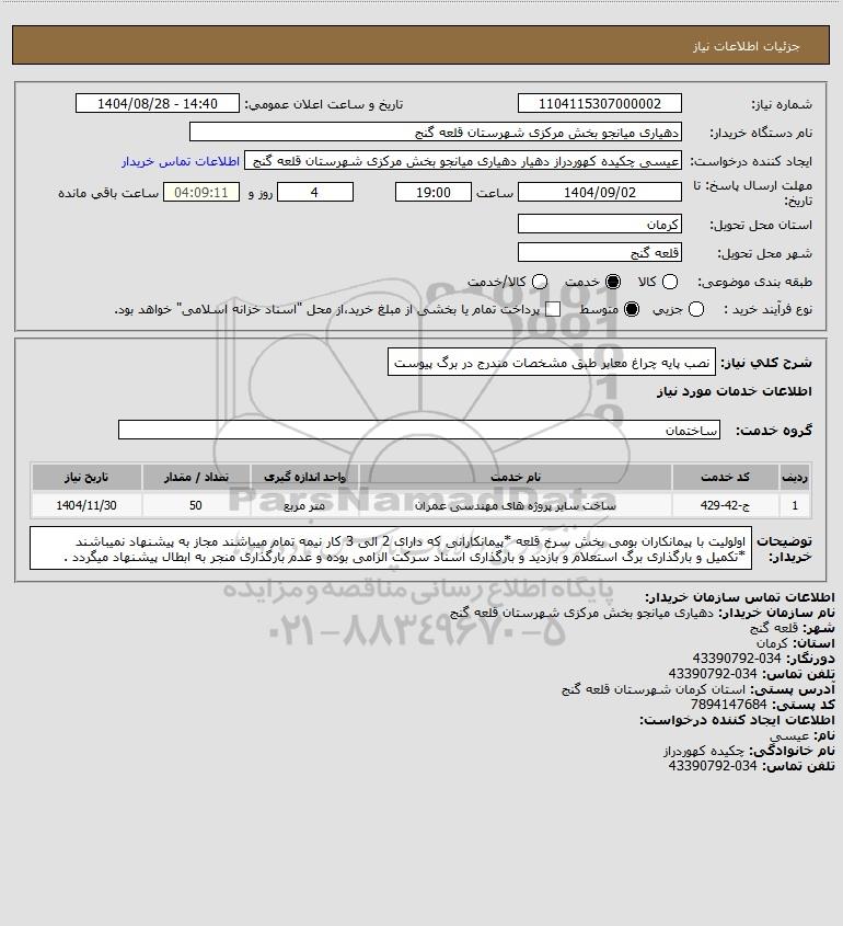 تلفن:5- 88349670 (021) فکس: 88349673 (021) Website: www.ParsNamadData.com E-mail: Info@ParsNamadData.com استعلام نصب پایه چراغ معابر طبق مشخصات مندرج در برگ پیوست