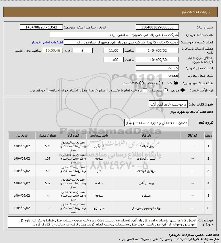 تلفن:5- 88349670 (021) فکس: 88349673 (021) Website: www.ParsNamadData.com E-mail: Info@ParsNamadData.com استعلام درخواست خرید آهن آلات