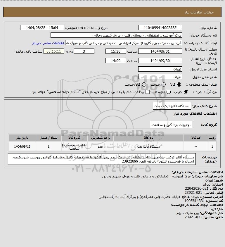 تلفن:5- 88349670 (021) فکس: 88349673 (021) Website: www.ParsNamadData.com E-mail: Info@ParsNamadData.com استعلام دستگاه آنالیز ترکیب بدن