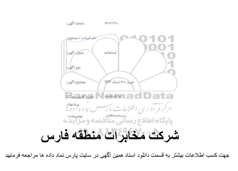 تلفن:5- 88349670 (021) فکس: 88349673 (021) Website: www.ParsNamadData.com E-mail: Info@ParsNamadData.com استعلام خرید 200 لینک SFP