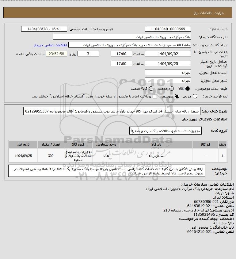 تلفن:5- 88349670 (021) فکس: 88349673 (021) Website: www.ParsNamadData.com E-mail: Info@ParsNamadData.com استعلام سطل زباله بدنه استیل 14 لیتری بهاز کالا -پدال دارآرام بند درب مشکی