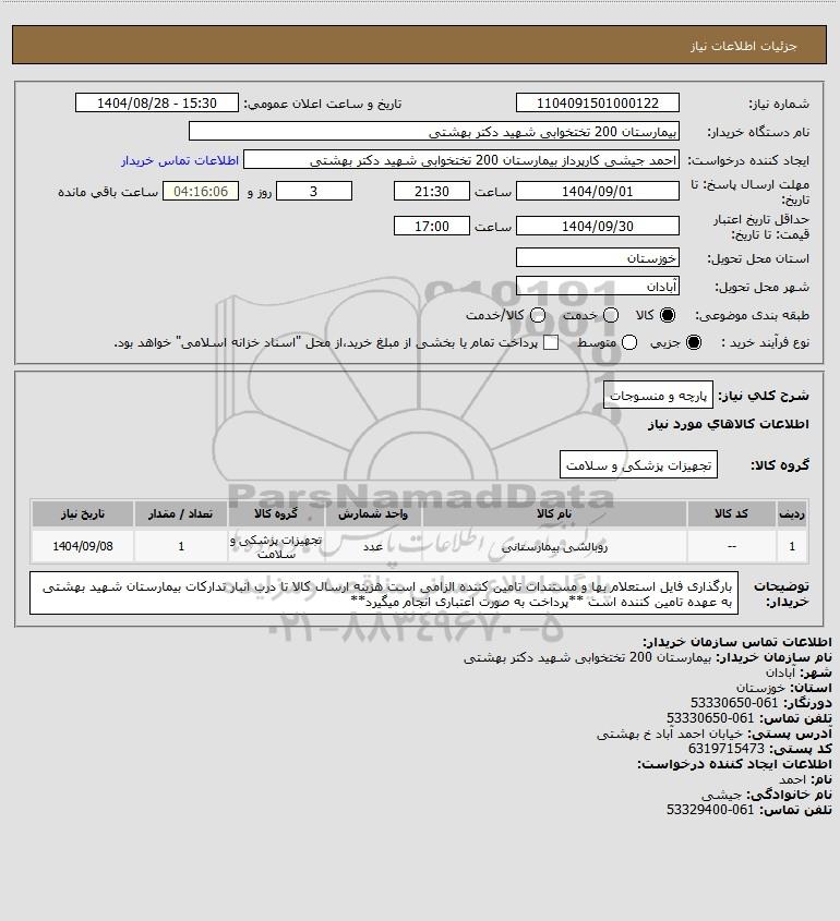 تلفن:5- 88349670 (021) فکس: 88349673 (021) Website: www.ParsNamadData.com E-mail: Info@ParsNamadData.com استعلام پارچه و منسوجات
