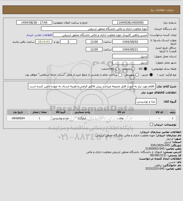 تلفن:5- 88349670 (021) فکس: 88349673 (021) Website: www.ParsNamadData.com E-mail: Info@ParsNamadData.com استعلام اقلام مورد نیاز به صورت فایل ضمیمه میباشد پیش فاکتور الزامی و هزینه ارسال به عهده تامین کننده است