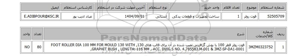تلفن:5- 88349670 (021) فکس: 88349673 (021) Website: www.ParsNamadData.com E-mail: Info@ParsNamadData.com استعلام فوت رولر