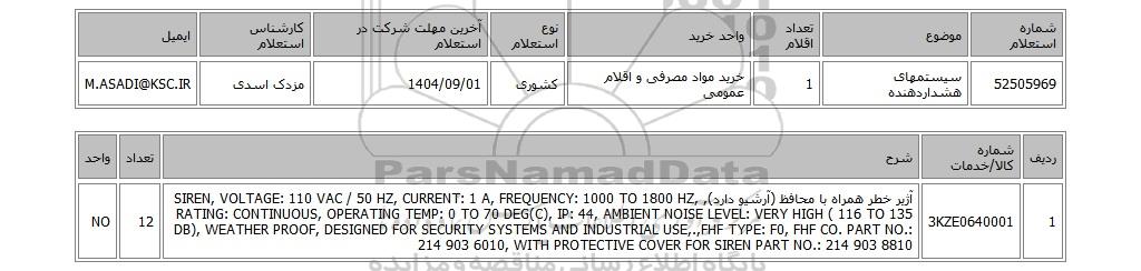 تلفن:5- 88349670 (021) فکس: 88349673 (021) Website: www.ParsNamadData.com E-mail: Info@ParsNamadData.com استعلام سیستمهای هشداردهنده