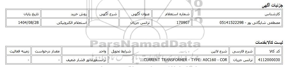 تلفن:5- 88349670 (021) فکس: 88349673 (021) Website: www.ParsNamadData.com E-mail: Info@ParsNamadData.com استعلام الکترونیکی ترانس جریان