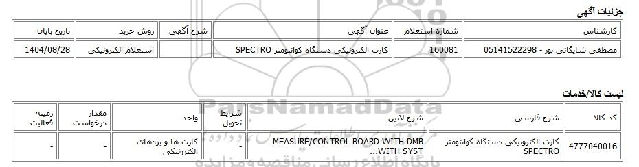 تلفن:5- 88349670 (021) فکس: 88349673 (021) Website: www.ParsNamadData.com E-mail: Info@ParsNamadData.com استعلام الکترونیکی کارت الکترونیکی دستگاه کوانتومتر SPECTRO