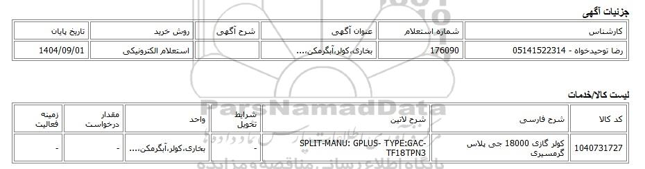 تلفن:5- 88349670 (021) فکس: 88349673 (021) Website: www.ParsNamadData.com E-mail: Info@ParsNamadData.com استعلام الکترونیکی بخاریکولرآبگرمکن...