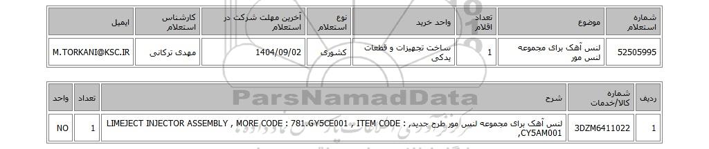 تلفن:5- 88349670 (021) فکس: 88349673 (021) Website: www.ParsNamadData.com E-mail: Info@ParsNamadData.com استعلام لنس آهک برای مجموعه لنس مور