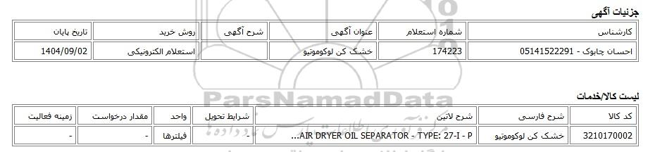 احسان چابوک - 05141522291174223خشک کن لوکوموتیواستعلام الکترونیکی1404/09/02