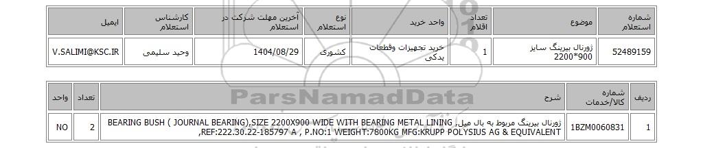 تلفن:5- 88349670 (021) فکس: 88349673 (021) Website: www.ParsNamadData.com E-mail: Info@ParsNamadData.com استعلام ژورنال بیرینگ سایز 900*2200