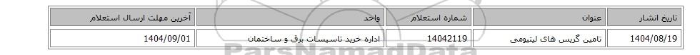 تلفن:5- 88349670 (021) فکس: 88349673 (021) Website: www.ParsNamadData.com E-mail: Info@ParsNamadData.com استعلام تامین گریس های لیتیومی