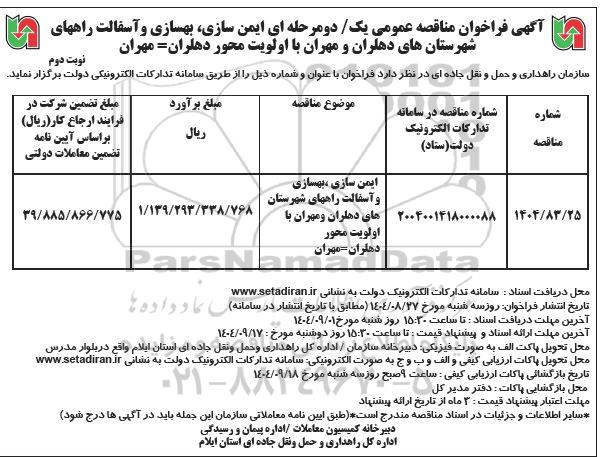 ایمن سازی، بهسازی و آسفالت راه های شهرستان های دهلران و مهران با الویت محور دهلران = مهران