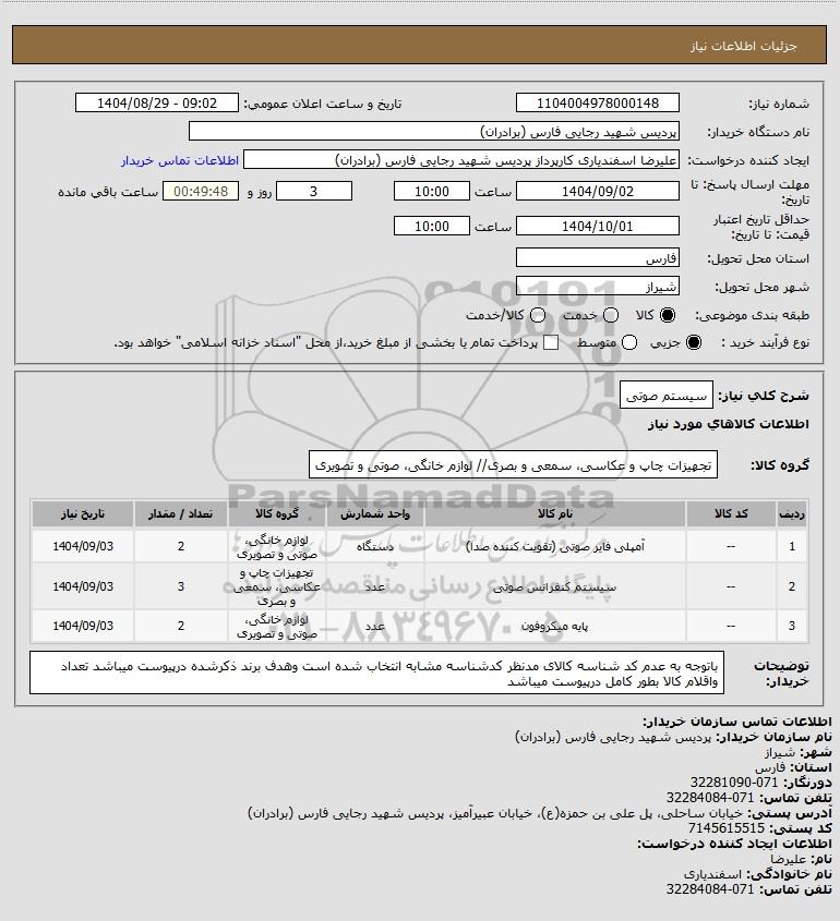 تلفن:5- 88349670 (021) فکس: 88349673 (021) Website: www.ParsNamadData.com E-mail: Info@ParsNamadData.com استعلام سیستم صوتی