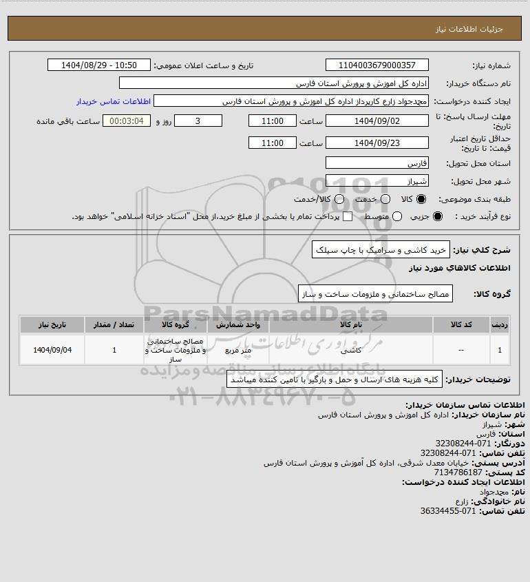 تلفن:5- 88349670 (021) فکس: 88349673 (021) Website: www.ParsNamadData.com E-mail: Info@ParsNamadData.com استعلام خرید کاشی و سرامیک با چاپ سیلک