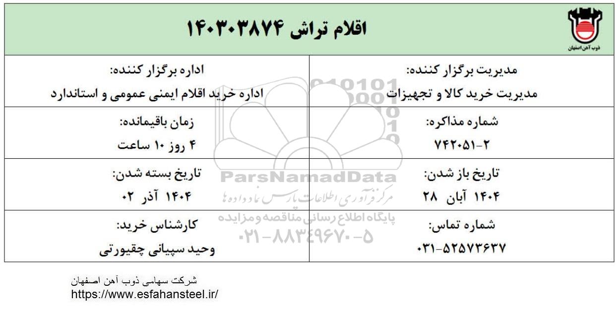 تلفن:5- 88349670 (021) فکس: 88349673 (021) Website: www.ParsNamadData.com E-mail: Info@ParsNamadData.com استعلام اقلام تراش 140303874