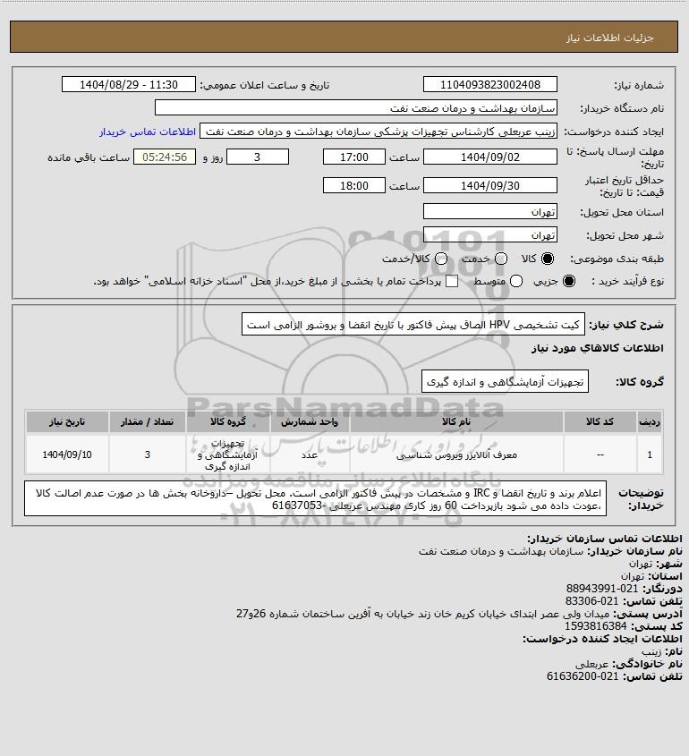تلفن:5- 88349670 (021) فکس: 88349673 (021) Website: www.ParsNamadData.com E-mail: Info@ParsNamadData.com استعلام کیت تشخیصی HPV