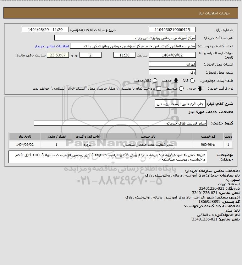 تلفن:5- 88349670 (021) فکس: 88349673 (021) Website: www.ParsNamadData.com E-mail: Info@ParsNamadData.com استعلام چاپ فرم طبق لیست پیوستی