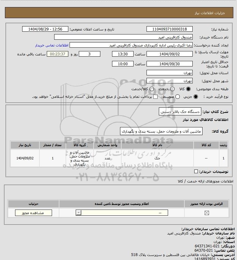 تلفن:5- 88349670 (021) فکس: 88349673 (021) Website: www.ParsNamadData.com E-mail: Info@ParsNamadData.com استعلام دستگاه جک بالابر دستی