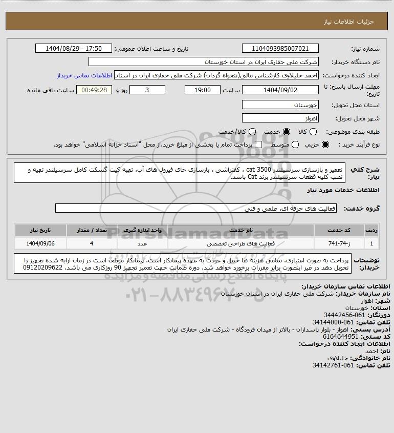 تهیه و نصب کلیه قطعات سرسیلندر برند Cat باشد.
