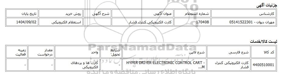 تلفن:5- 88349670 (021) فکس: 88349673 (021) Website: www.ParsNamadData.com E-mail: Info@ParsNamadData.com استعلام الکترونیکی کارت الکترونیکی کنترل فشار