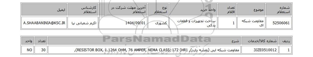 تلفن:5- 88349670 (021) فکس: 88349673 (021) Website: www.ParsNamadData.com E-mail: Info@ParsNamadData.com استعلام مقاومت شبکه ای
