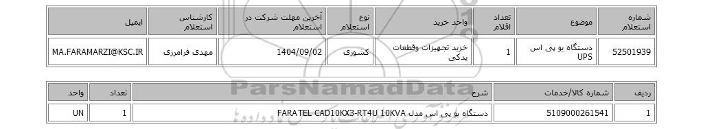 تلفن:5- 88349670 (021) فکس: 88349673 (021) Website: www.ParsNamadData.com E-mail: Info@ParsNamadData.com استعلام دستگاه یو پی اس UPS