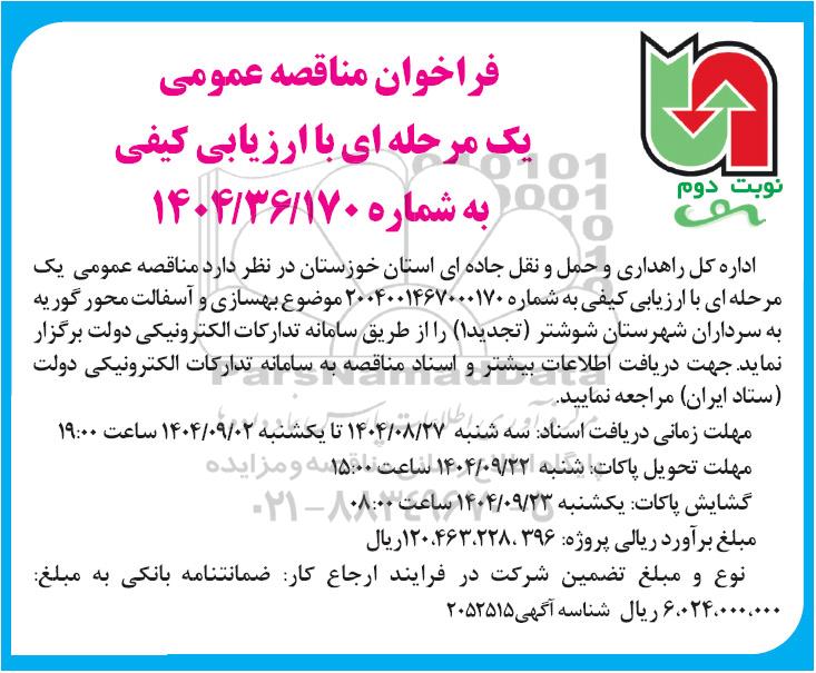 تلفن:5- 88349670 (021) فکس: 88349673 (021) Website: www.ParsNamadData.com E-mail: Info@ParsNamadData.com تجدید 1 مناقصه بهسازی و آسفالت / نوبت دوم