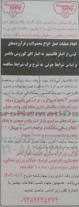 شرکت پخش سراسری بازار گستر پگاه در نظر دارد عملیات مشروحه ذیل را از طریق مناقصه عمومی به اشخاص حقیقی و حقوقی واجد شرایط واگذار نماید.