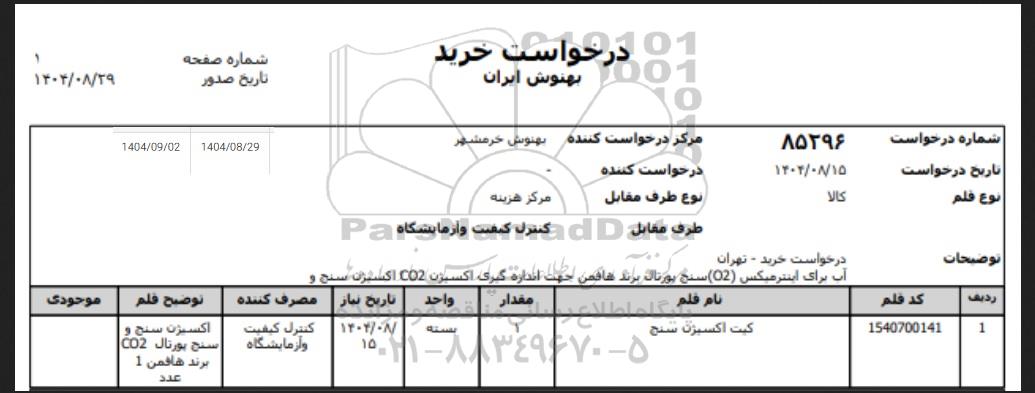 تلفن:5- 88349670 (021) فکس: 88349673 (021) Website: www.ParsNamadData.com E-mail: Info@ParsNamadData.com استعلام کیت اکسیژن سنج