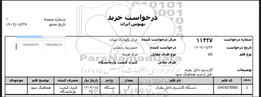تلفن:5- 88349670 (021) فکس: 88349673 (021) Website: www.ParsNamadData.com E-mail: Info@ParsNamadData.com استعلام دستگاه گازسنج داخل بطری