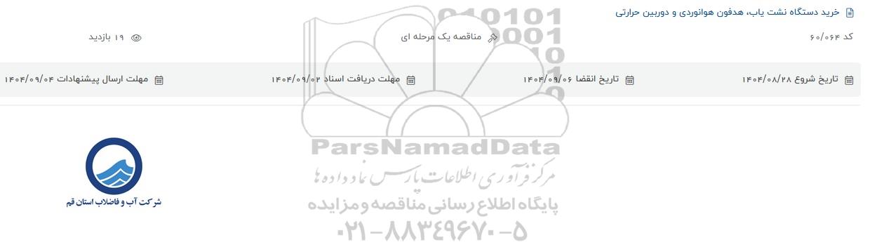 تلفن:5- 88349670 (021) فکس: 88349673 (021) Website: www.ParsNamadData.com E-mail: Info@ParsNamadData.com مناقصه خرید دستگاه نشت یاب، هدفون هوانوردی و دوربین حرارتی