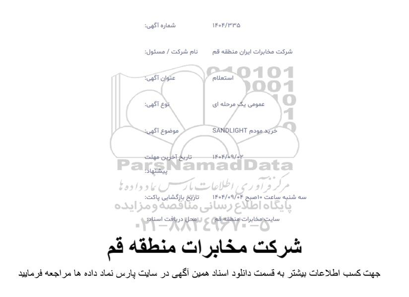 تلفن:5- 88349670 (021) فکس: 88349673 (021) Website: www.ParsNamadData.com E-mail: Info@ParsNamadData.com استعلام خرید مودم SANDLIGHT