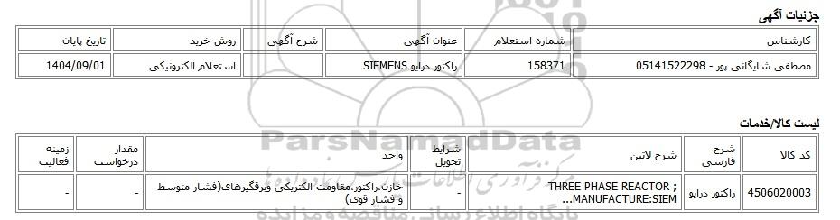 تلفن:5- 88349670 (021) فکس: 88349673 (021) Website: www.ParsNamadData.com E-mail: Info@ParsNamadData.com استعلام الکترونیکی راکتور درایو SIEMENS