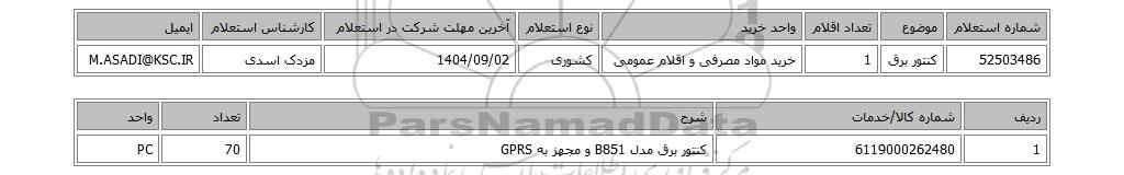 تلفن:5- 88349670 (021) فکس: 88349673 (021) Website: www.ParsNamadData.com E-mail: Info@ParsNamadData.com استعلام کنتور برق