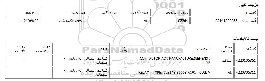 تلفن:5- 88349670 (021) فکس: 88349673 (021) Website: www.ParsNamadData.com E-mail: Info@ParsNamadData.com استعلام الکترونیکی رله