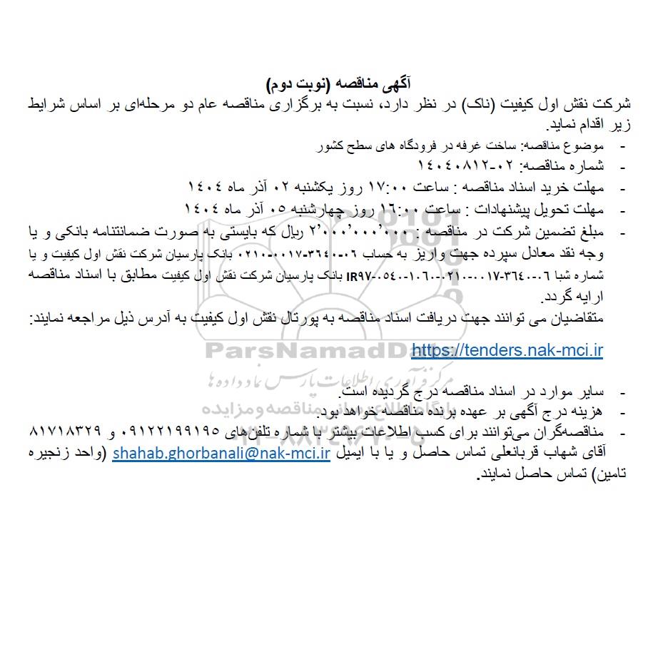| شماره آگهی: 02 - 14040812- نوبت دوم |