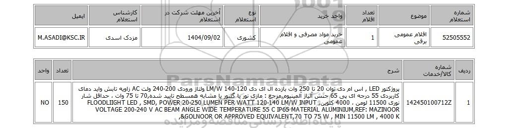 تلفن:5- 88349670 (021) فکس: 88349673 (021) Website: www.ParsNamadData.com E-mail: Info@ParsNamadData.com استعلام اقلام عمومی برقی