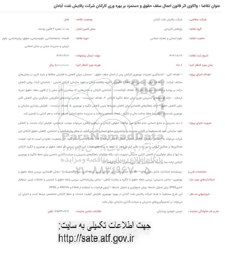عنوان تقاضا : واکاوی اثر قانون اعمال سقف حقوق و دستمزد بر بهره وری کارکنان شرکت پالایش نفت آبادان
